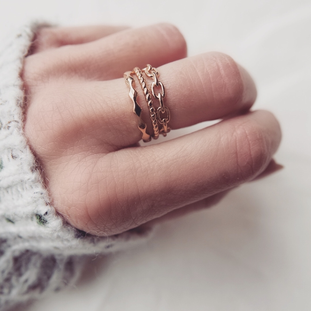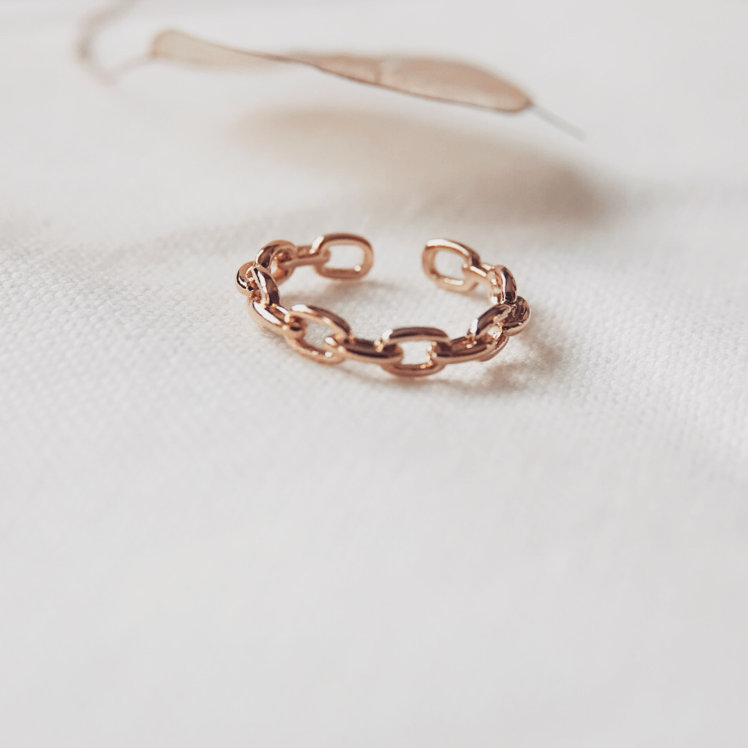 Bague en forme chaine, en plaqué or 3 microns.