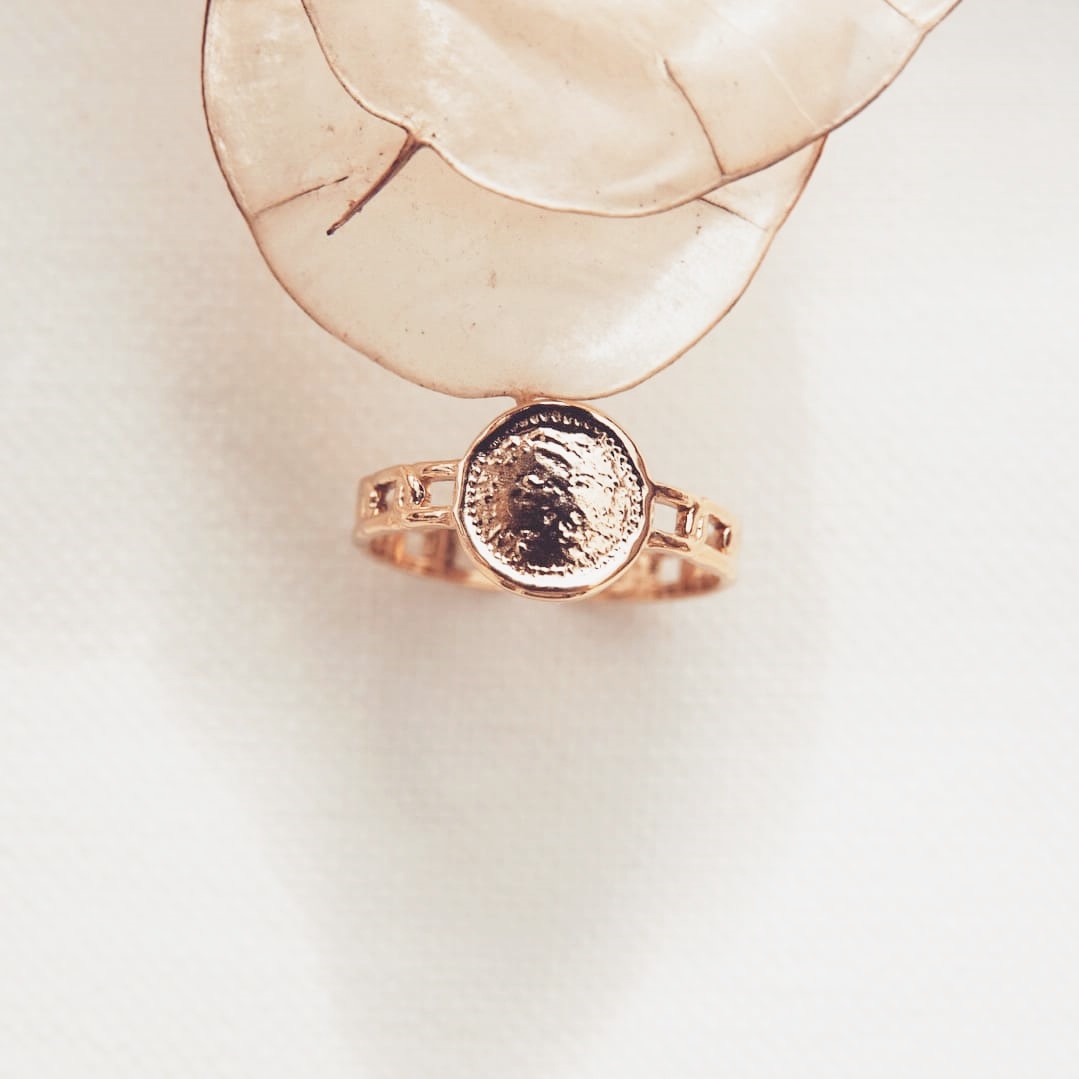 Bague composée d’un rond texturé.